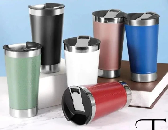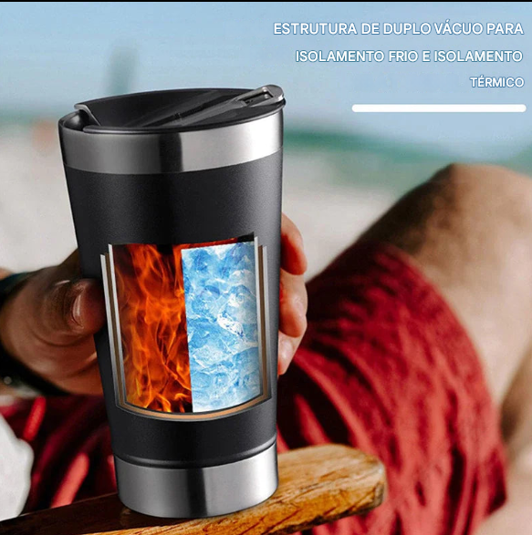 Copo Térmico com Tampa e Abridor INOX – Perfeito para Quente e Gelado!