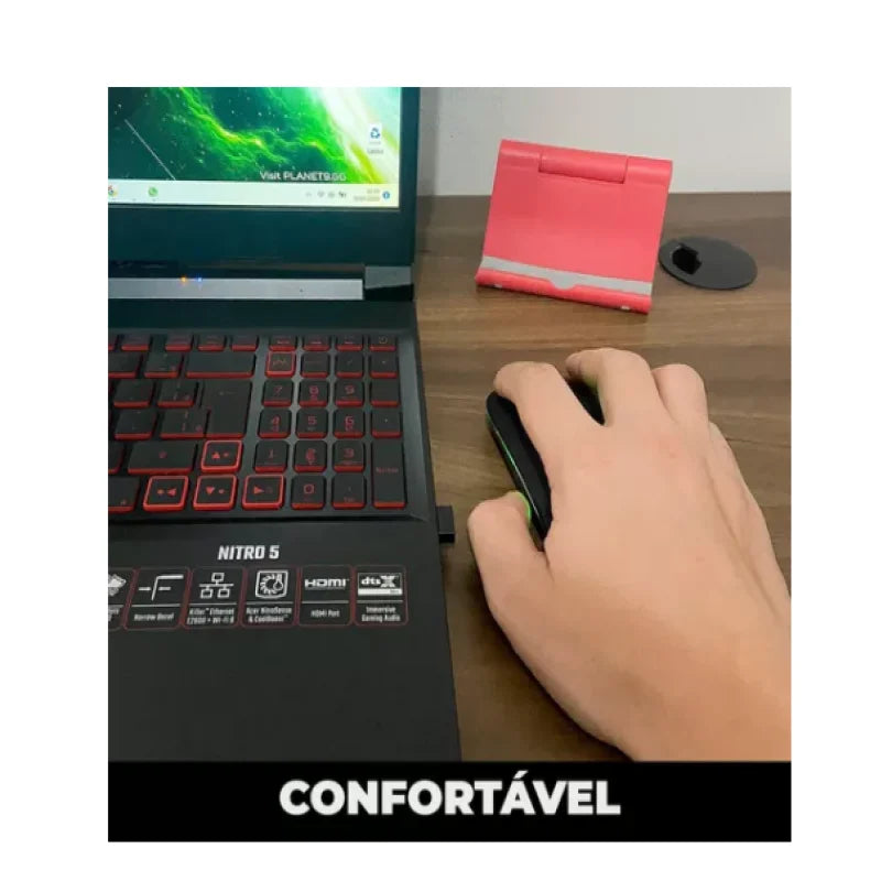 Aproveite seu novo Mouse sem fio recarregável com design elegante, LED RGB e click silencioso para máxima eficiência e conforto durante o uso.