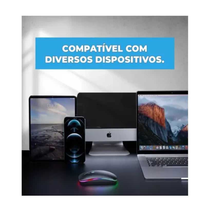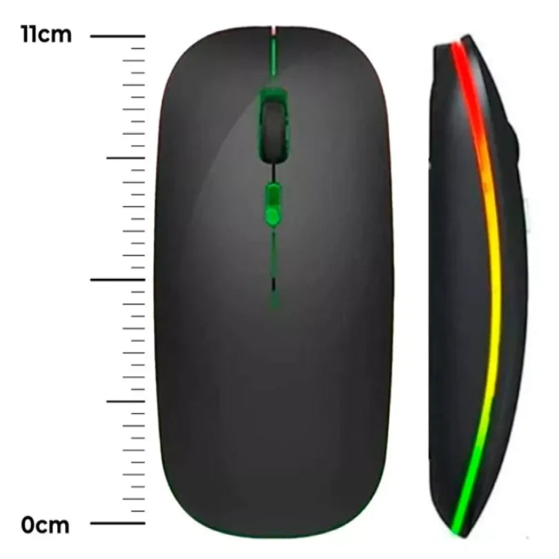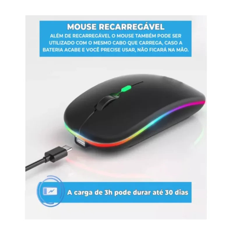 Mouse Sem Fio Elegante com Recarga, Click Silencioso e LED RGB