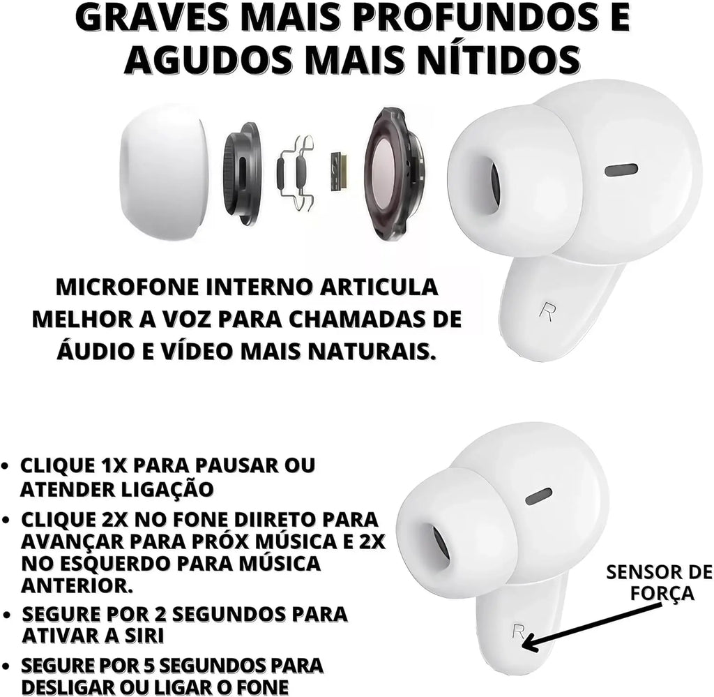 Fone de ouvido Bluetooth compatível com IOS e Android